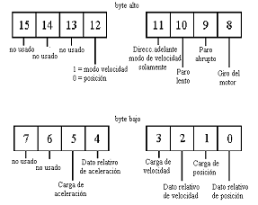 posiciones del bit, el modo de la trayectoria (velocidad o